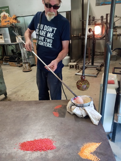 Glass blowing demos weds-sat, call for exact times, large gallery of our work for sale.